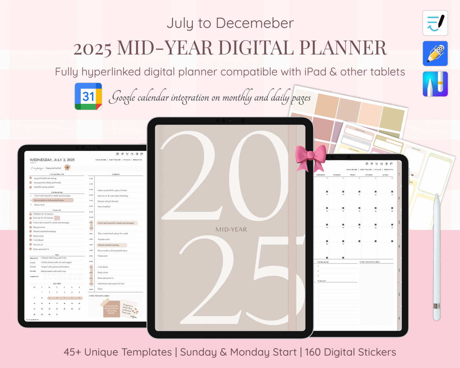2025 Mid Year Digital Planner With Google Calendar Integration