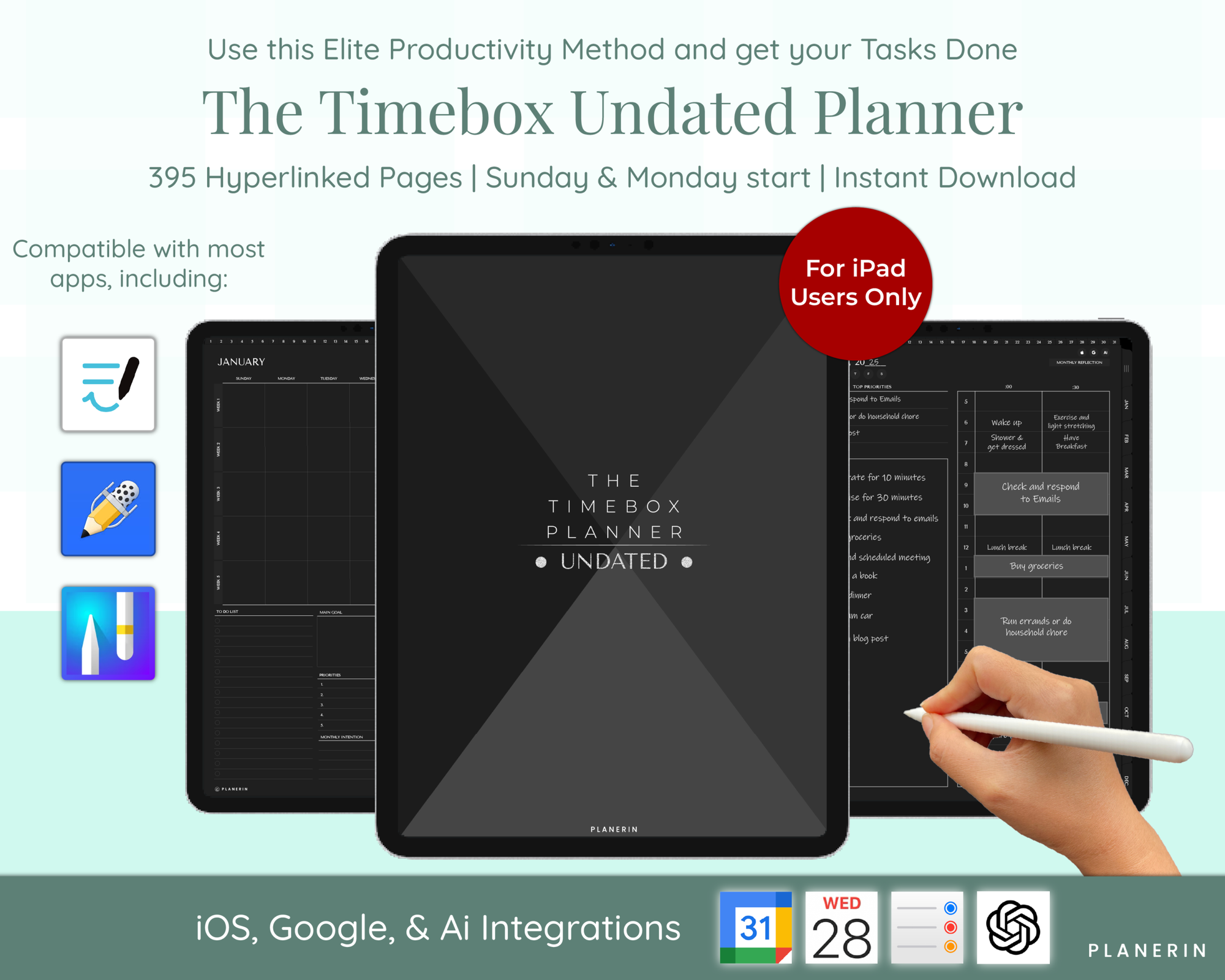With hyperlinked navigation, monthly planning and reflection pages, note taking templates, and seamless app integrations, this timeboxing planner is a simple yet powerful tool for organizing your time efficiently.